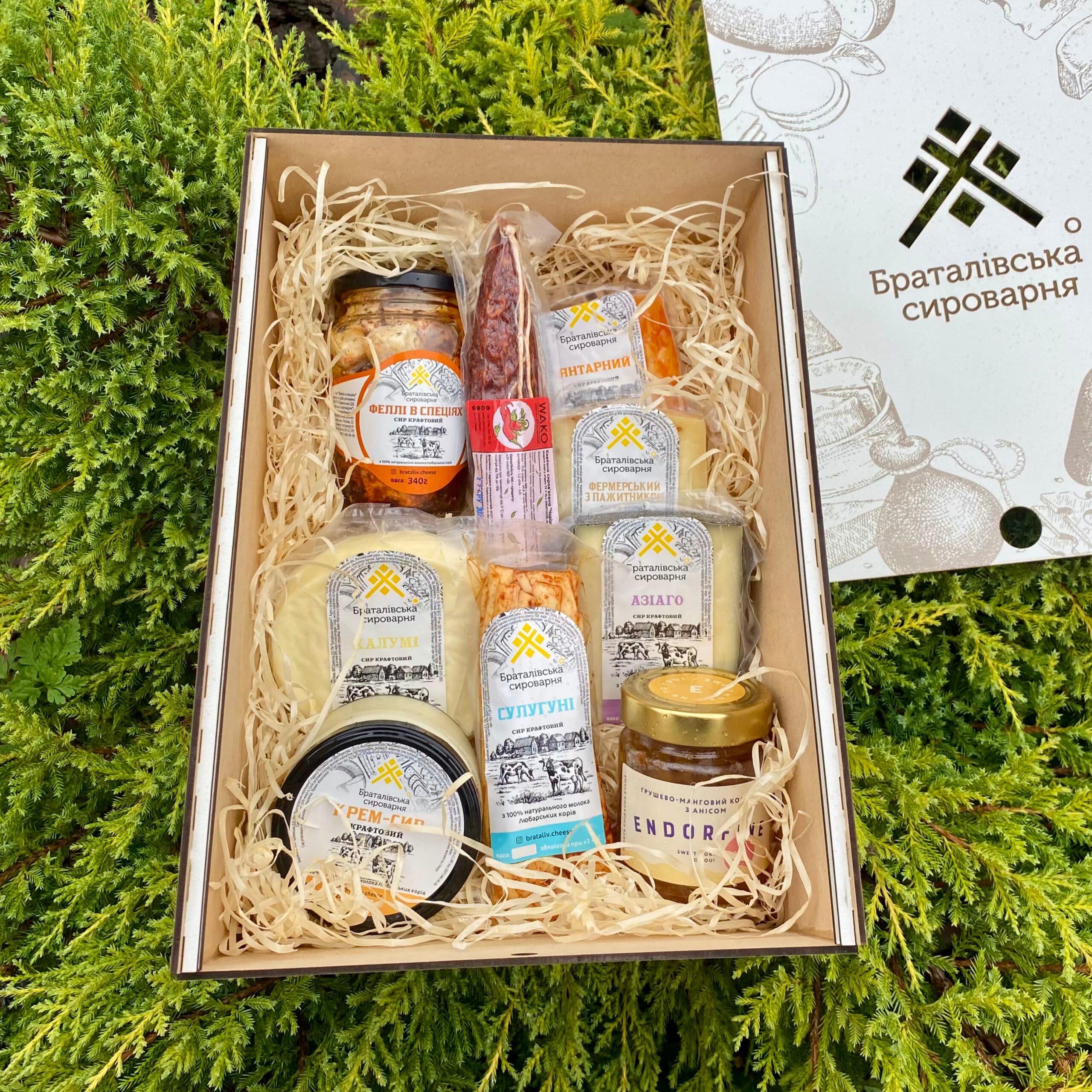 У боксі №5 зібрані українські крафтові сири, виготовлені з фермерського молока. Це асорті підходить для створення сирного плато, дегустацій чи подарунків. Виробництво без ГМО, за сучасними технологіями. Купити сирний набір можна онлайн.